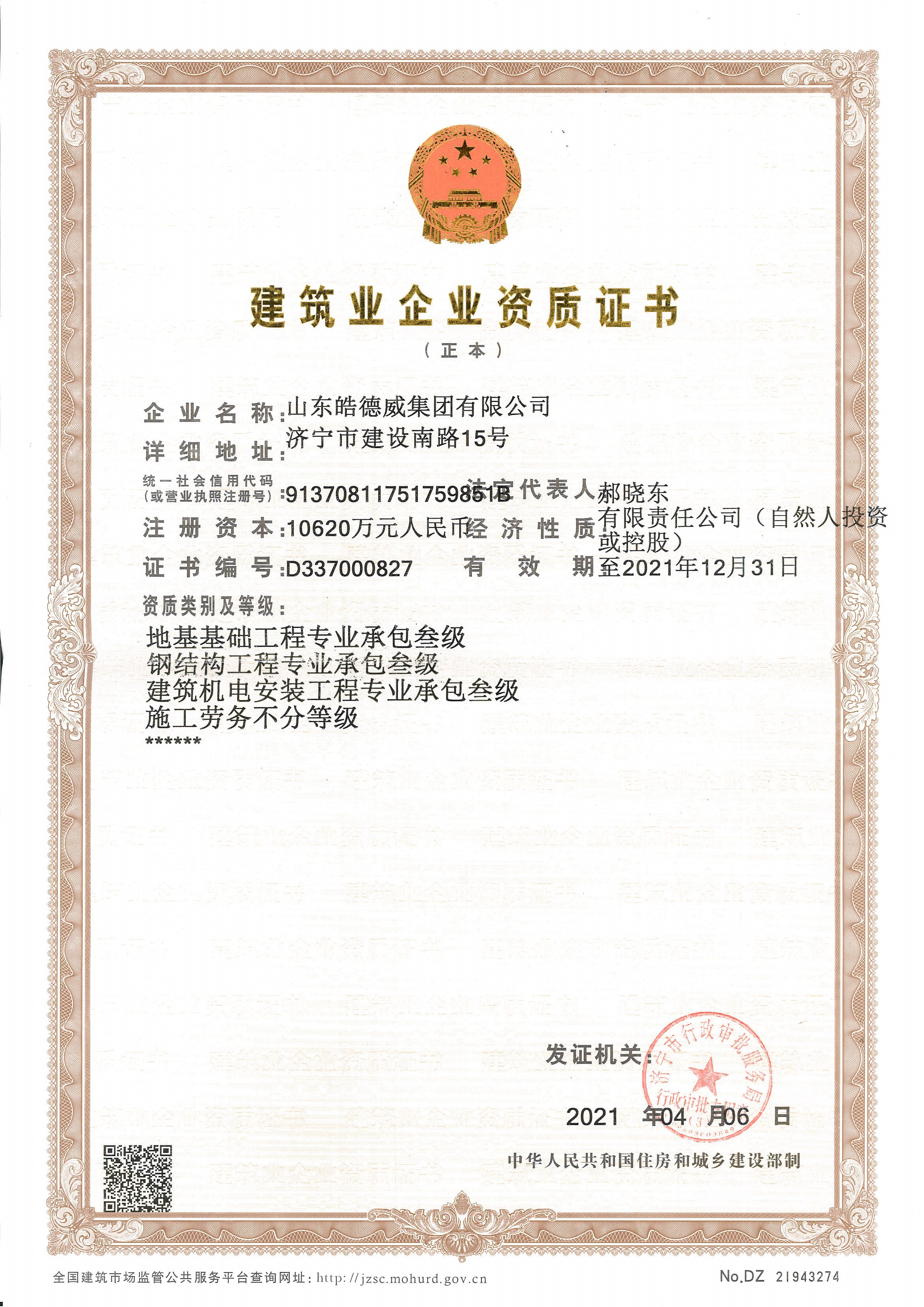 地基基础、钢结构、建筑、施工劳务证书